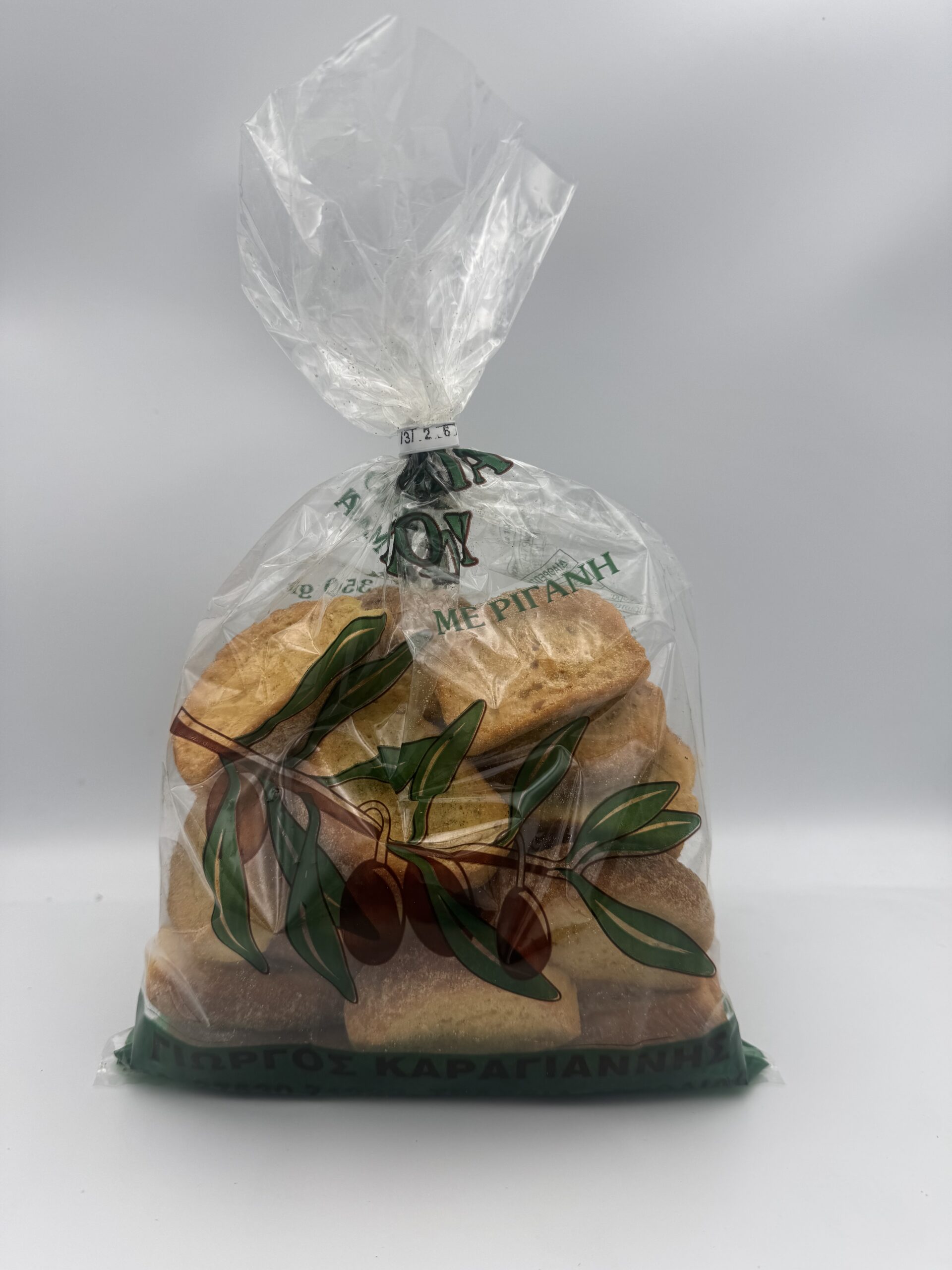 “Trachea rusks” are a category of traditional, hard rusks from the Trachea region of Epidaurus, known for their pure ingredients and traditional method of preparation, often with oil, oregano or tomato. They are available in various variations, such as wheat, wholemeal and oil oregano, and are usually made in a wood-fired oven.